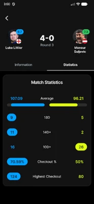 Gå aldri glipp av et eneste pilkast med JustDarts sitt omfattende Matchsenter. Her finner du sanntidsresultater, live statistikk og detaljerte kampoversikter for absolutt alle PDC-turneringer, inkludert de spennende øyeblikkene fra PDC World Championship på Ally Pally. Følg favorittspillerne dine tett, hold oversikt over tabeller og tidsplaner, og gjenopplev høydepunktene når det passer deg. JustDarts er utviklet for den dedikerte dartentusiasten, og er ditt uunnværlige verktøy for å være i hjertet av sporten.