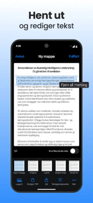 Opplev en sømløs overgang til en digitalisert hverdag med vår fremragende skannerapp, designet for å forvandle din smarttelefon til et komplett mobilt dokumentsenter. Enten du trenger å fange kvitteringer, forelesningsnotater, viktige fakturaer eller visittkort, utnytter denne appen kameraet ditt til å digitalisere alle papirdokumenter med enestående nøyaktighet. Den integrerte OCR-teknologien gjenkjenner automatisk tekst, slik at du enkelt kan redigere, signere, lagre og dele materialet ditt i foretrukne formater som PDF, JPG, Word og TXT.