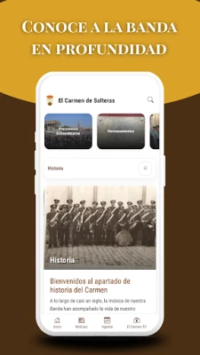 Opplev historien og pulsen til El Carmen de Salteras rett fra lommen din med El Carmen-appen. Dette er din digitale portal til nesten et århundre med levende musikalsk arv, designet for å være intuitiv og mobilvennlig. Få umiddelbar tilgang til de siste nyhetene, en detaljert oversikt over kommende opptredener, hele repertoaret som definerer institusjonen, og en omfattende diskografi. Dykk ned i El Carmen de Salteras' fascinerende historie og lær om alle dirigentene som har formet dens utvikling. Alt innhold oppdateres kontinuerlig, og sikrer at du alltid er koblet til den rike kulturarven.
