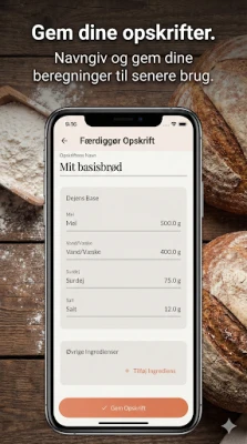 "Surdejsberegner - opskriftslog" er den smarte makker til surdejsbagere. Beregn nemt hydrering og saltprocent, og log dine opskrifter samt justeringer. En digital notesbog skabt af en bager for at mestre surdejsmatematikken og holde styr på dine eksperimenter uden regneark.