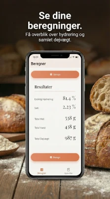 Glem kompliserte utregninger! Med denne appen får du umiddelbart oversikt over hydrering og saltprosent basert på dine valgte ingredienser. Har du en spesifikk hydrering i tankene for din neste deig? Applikasjonen beregner nøyaktig hvor mye væske du trenger for å oppnå det ideelle resultatet, hver eneste gang. Presisjon har aldri vært enklere å oppnå.